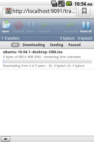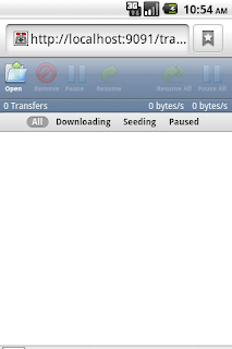 I verified it in Android emulator (froyo), coz it can use local machine network. I run Transmission-daemon from the terminal. Then, I open Android Web browser and type this URL http://localhost:9091. It would go to Transmission Web UI. I can control torrent from it. Like add a BT torrent, delete torrent, pause it, check current status. The Web UI looks nice and easy to use.